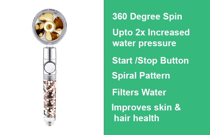 Der TurboFan-Duschkopf verfügt über ein Turbofan-Design, das ein wunderschönes Muster des fließenden Wassers erzeugt, und auch der goldfarbene Ventilator sieht wunderschön aus. Der Duschkopf ist wassersparend und verfügt über lasergeschnittene Mikrolöcher, die die Wassergeschwindigkeit erhöhen und so einen bis zu doppelten Wasserdruck für ein verbessertes Duscherlebnis bieten.